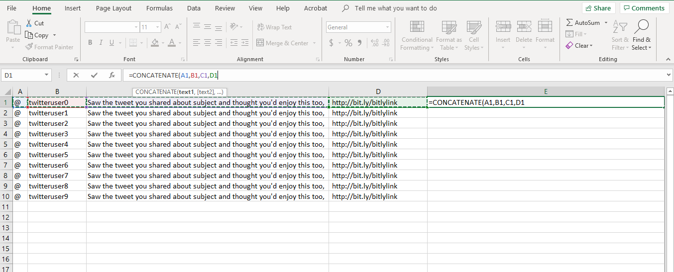 Excel Concatenate